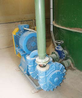 Per alimentare un filtropressa di queste dimensioni e così tecnologicamente avanzato, è stato necessario utilizzare una pompa speciale con rendimenti, portate e caratteristiche diverse dalle tradizionali pompe di alimentazione fango. Per questo motivo si è deciso di utilizzare una pompa Abra studiata per assolvere in modo esaustivo le performance richieste dalla macchina. Si è optato per una pompa con un doppio corpo e doppia girante aperta per poter raggiungere le pressioni richieste dal filtropressa. Questo tipo di pompa ha la meccanica con cuscinetti a bagno d’olio, corpi vulcanizzati con gomma speciale antiabrasiva e giranti in lega al cromo ad elevatissima durezza.